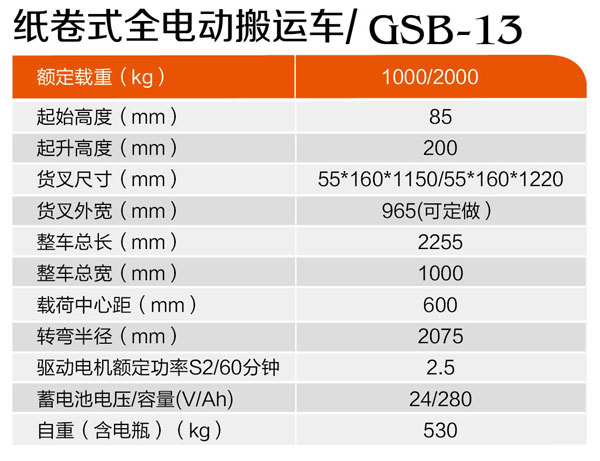 紙卷式全電動(dòng)搬運(yùn)車(chē)GSB-13
